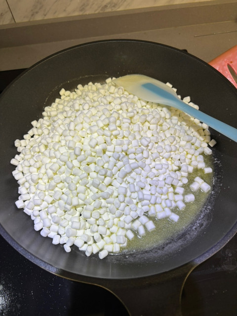 • 倒入棉花糖,持續攪拌至完全融化呈現黏稠狀